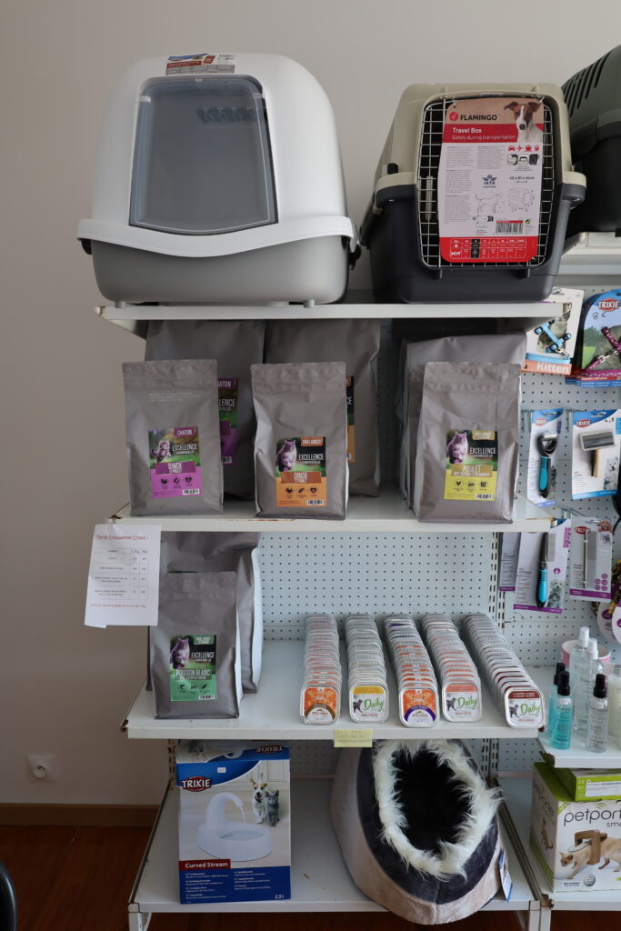 Notre chatterie dispose d'une boutique sur place où vous pouvez retrouver les croquettes avec lesquelles votre chaton a été alimenté durant son sevrage, ainsi qu'un large choix d'accessoires adaptés à la race.